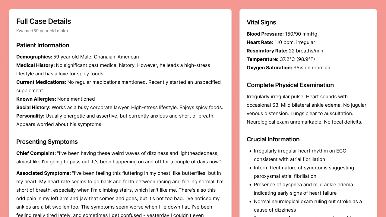What began as a skeptical conversation between two ER physicians wondering if AI could generate medically accurate training cases transformed when I suggested something more ambitious. What if large language models could not only create realistic cases but enable interactive learning experiences that reveal the hidden cognitive processes behind diagnosis?